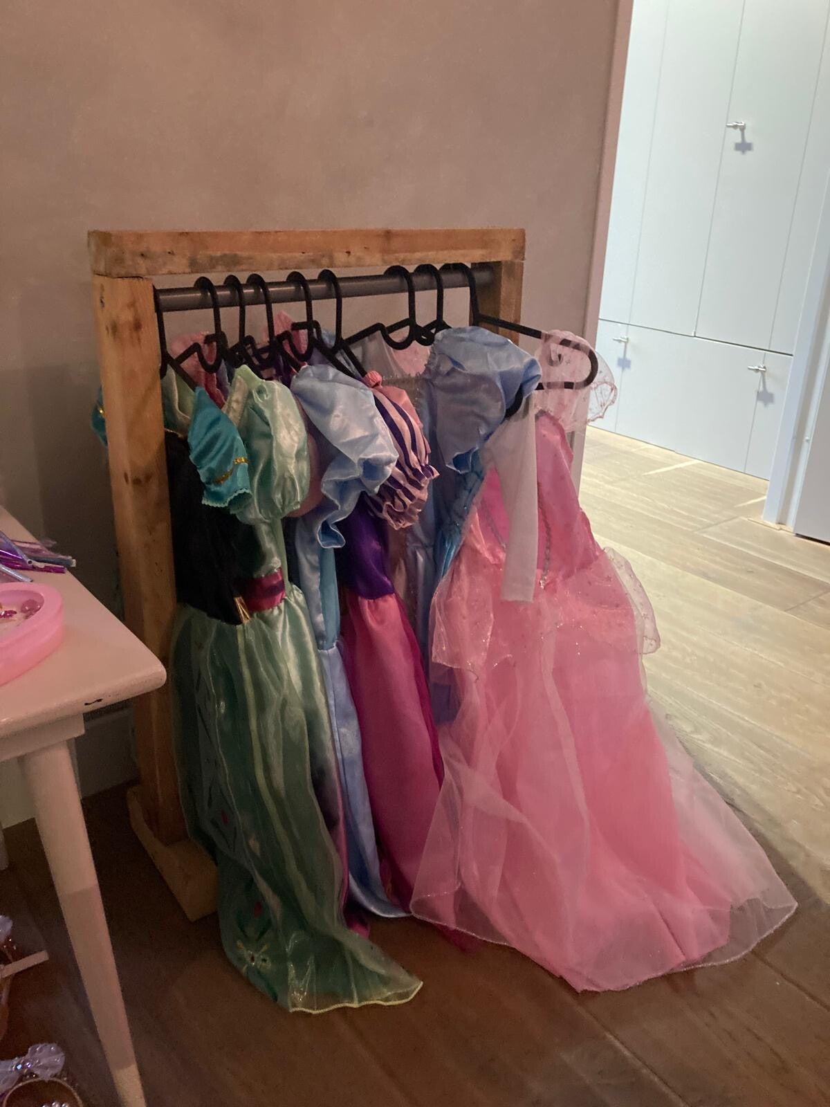 - prachtige glitterschoenen (geen plastic) - roze loper, speeltent en kledingrek - spiegeltjes versieren/pimpen