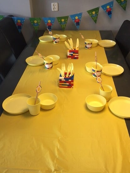 - Tafelkleed, bekers, borden, bestek en bakjes
